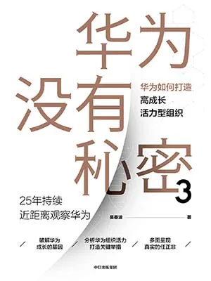 《華為沒有秘密3》是華為公司管理顧問吳春波的華為觀察係列書的第三本,延續前兩本書的風格,本書收錄了作者最近兩年的華為觀察文章,圍繞華為的成長基因、華為組織活力建設以及不老英雄任正非三個主題整理文章,並在書後附...